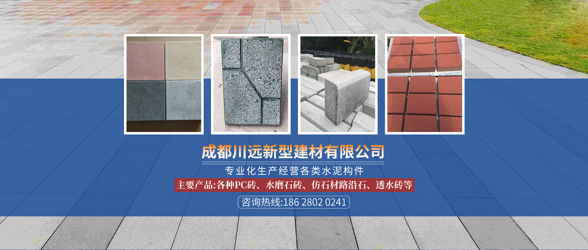 成都川遠新型建材有限公司是一家專業化生產經營透水磚、pc磚定制,仿石材路沿石、水磨石磚的企業。擁有了面積達1000多平方的生產基地,多套完整的大、中型生產設備和眾多專業生產技術人員。本廠生產的各種型號等...